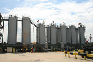 The bulk blending tanks at Coryton Advanced Fuels, in Essex.